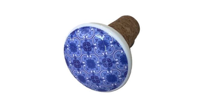 Verschönern Sie Ihre offenen Weinflaschen mit diesem handgefertigten Flaschenstöpsel-Violet aus spanischer Keramik. Er besteht aus Naturkorken mit dekorativem Keramikkopf in violet mit einem hell violeten Hintergrund mit dunkelen Violet-Blumen und weißen Verzieherungen. Diese kunstvollen Flaschenverschluss ist nicht nur praktisch, sondern verleiht Ihrem Zuhause einen Hauch von spanischem Flair.