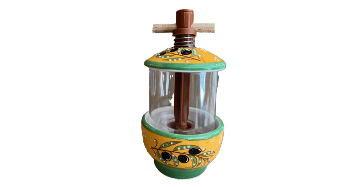 Gewürzmühle-Gelb mit Olivenmuster – Handbemalt, Keramik/Glas
